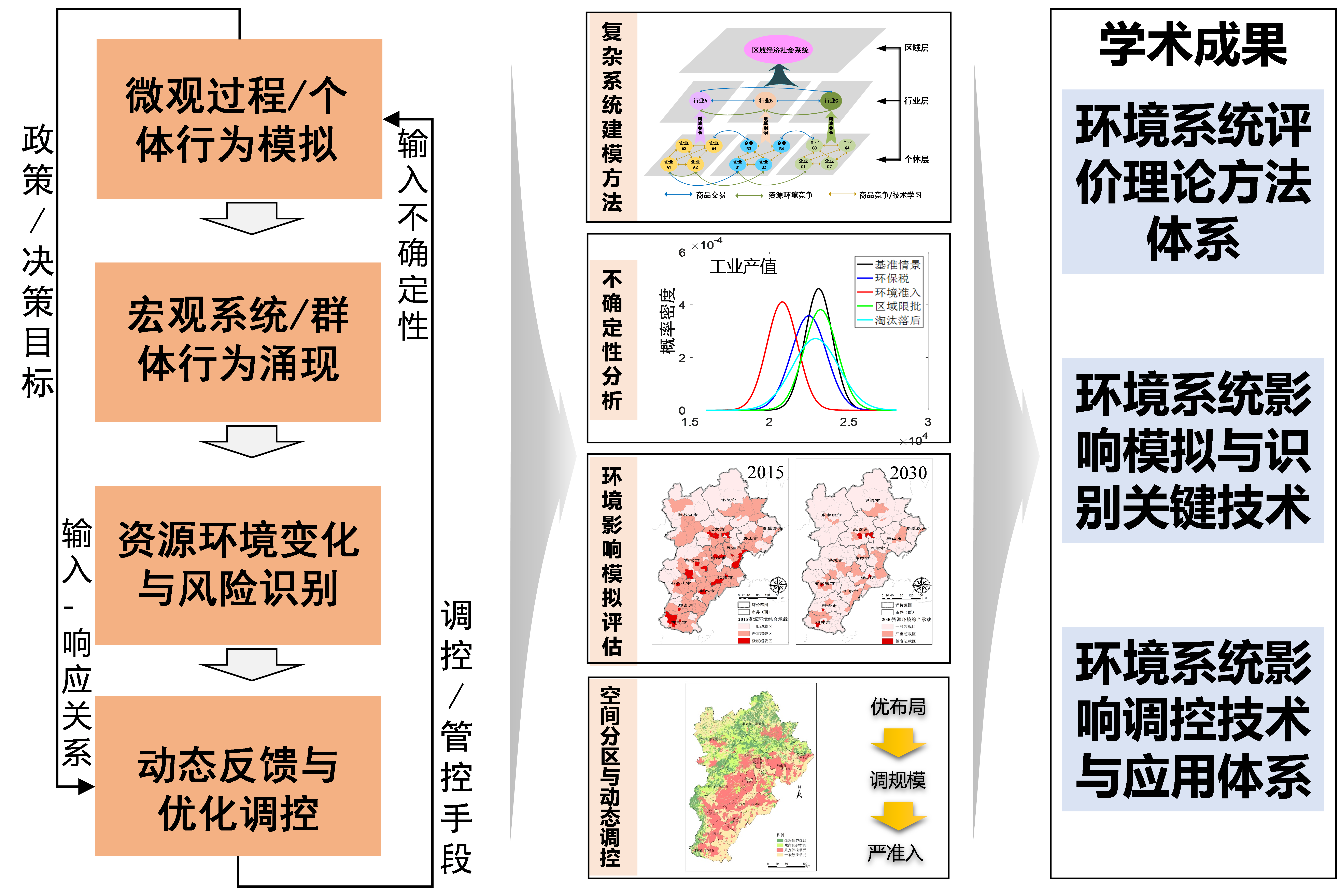 该成果围绕“经济社会系统变化驱动下的环境中长期影响识别与量化评估”关键科学问题,针对非线性环境系统变化与影响涌现机制不明晰、环境影响传递累积机制不确定、环境-经济系统调控不精准等技术瓶颈,以“系统变化-环境响应-反馈调控”为研究主线,综合运用复杂系统理论、环境系统分析方法与影响量化模拟技术等多学科交叉方法,初步形成了环境系统评价学的基本研究问题和方法学框架,拓展了环境系统分析研究领域,为国家环境影响评价改革与管理提供了高效精准的科学方法和决策工具。中国管理科学学会“管理科学奖”是依据国务院《国家科学技术奖励条例》和科技部《社会力量设立科学技术奖管理办法》的规定,报经国家科学技术奖励工作办公室批准设立的科学技术奖。“管理科学奖”每两年评选一次,已成为我国管理科学领域吸纳、展示、推广管理研究、管理实践成果的重要平台。