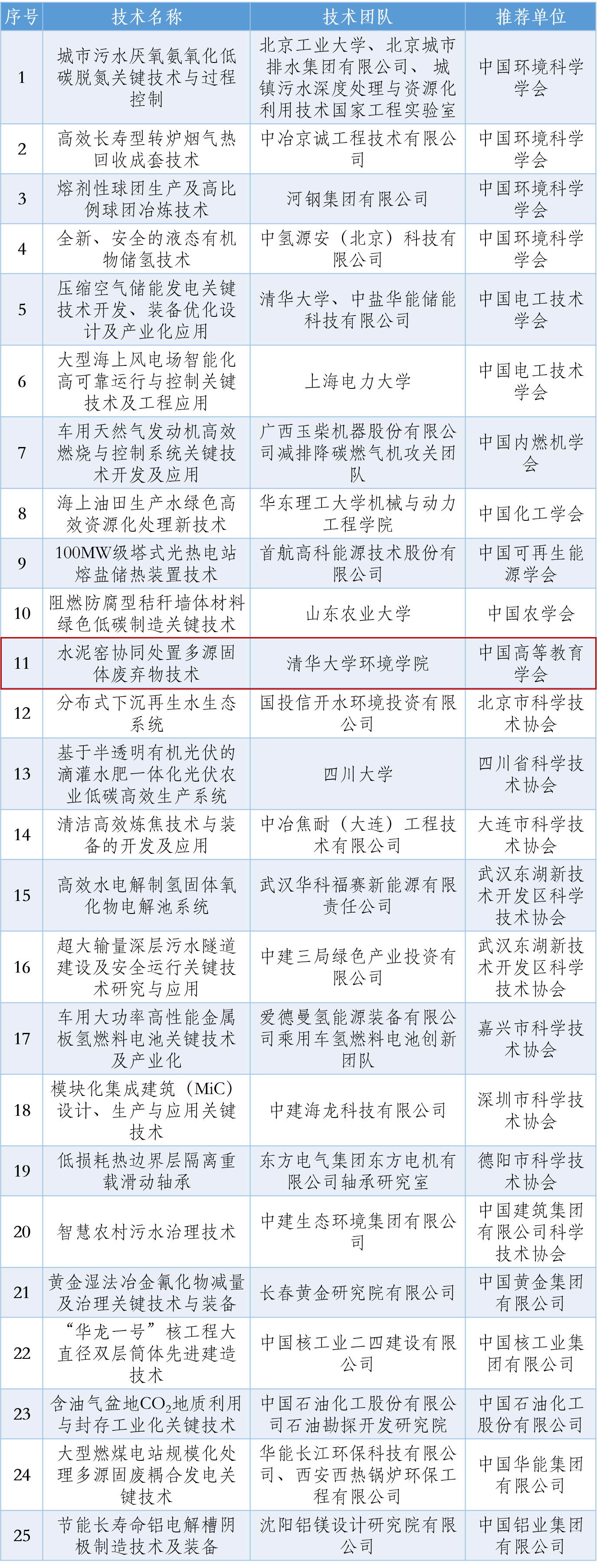 “科创中国”先导技术榜-绿色低碳领域