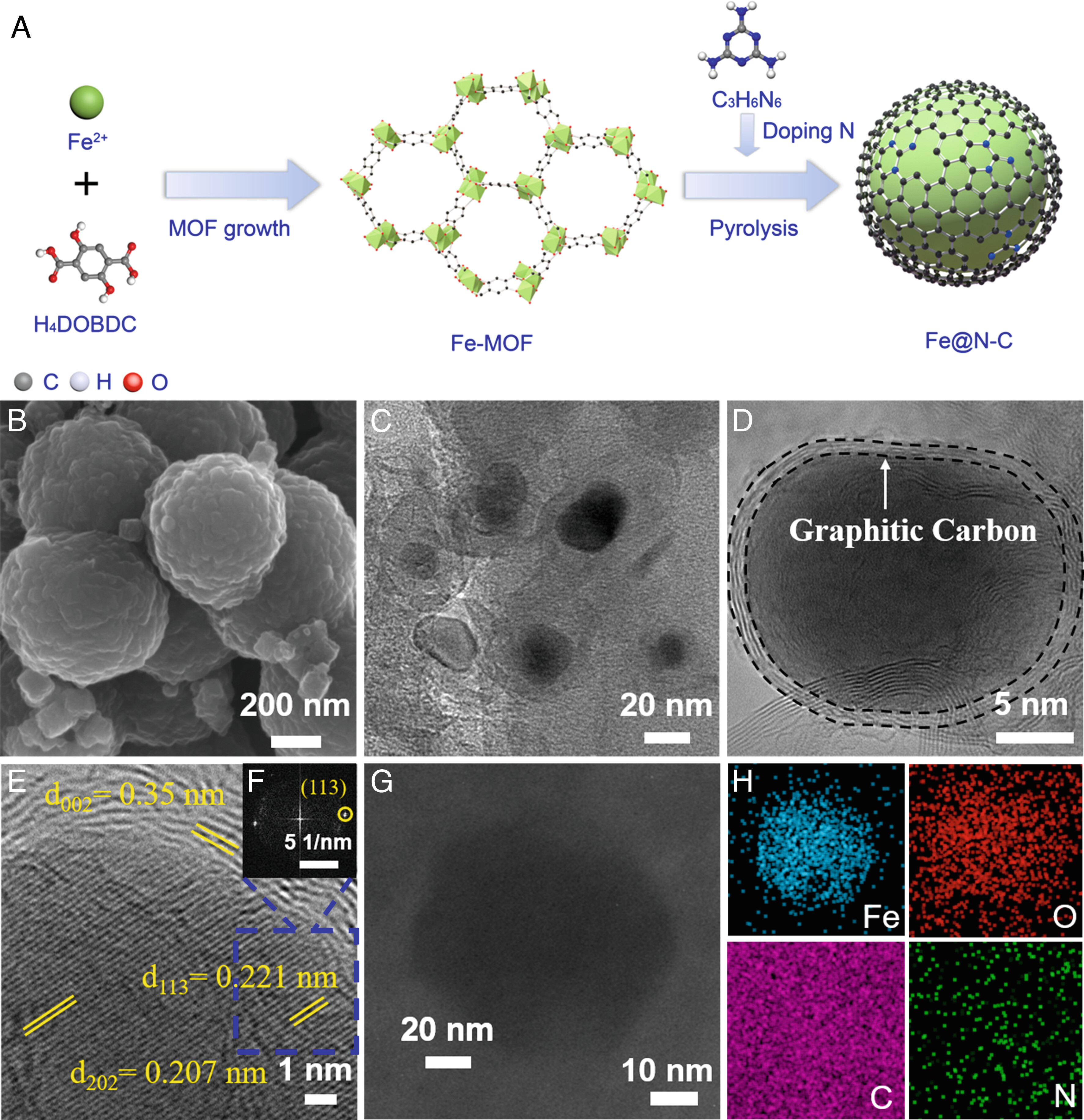 图1 Fe@N10-C催化剂合成示意图,形貌和元素表征