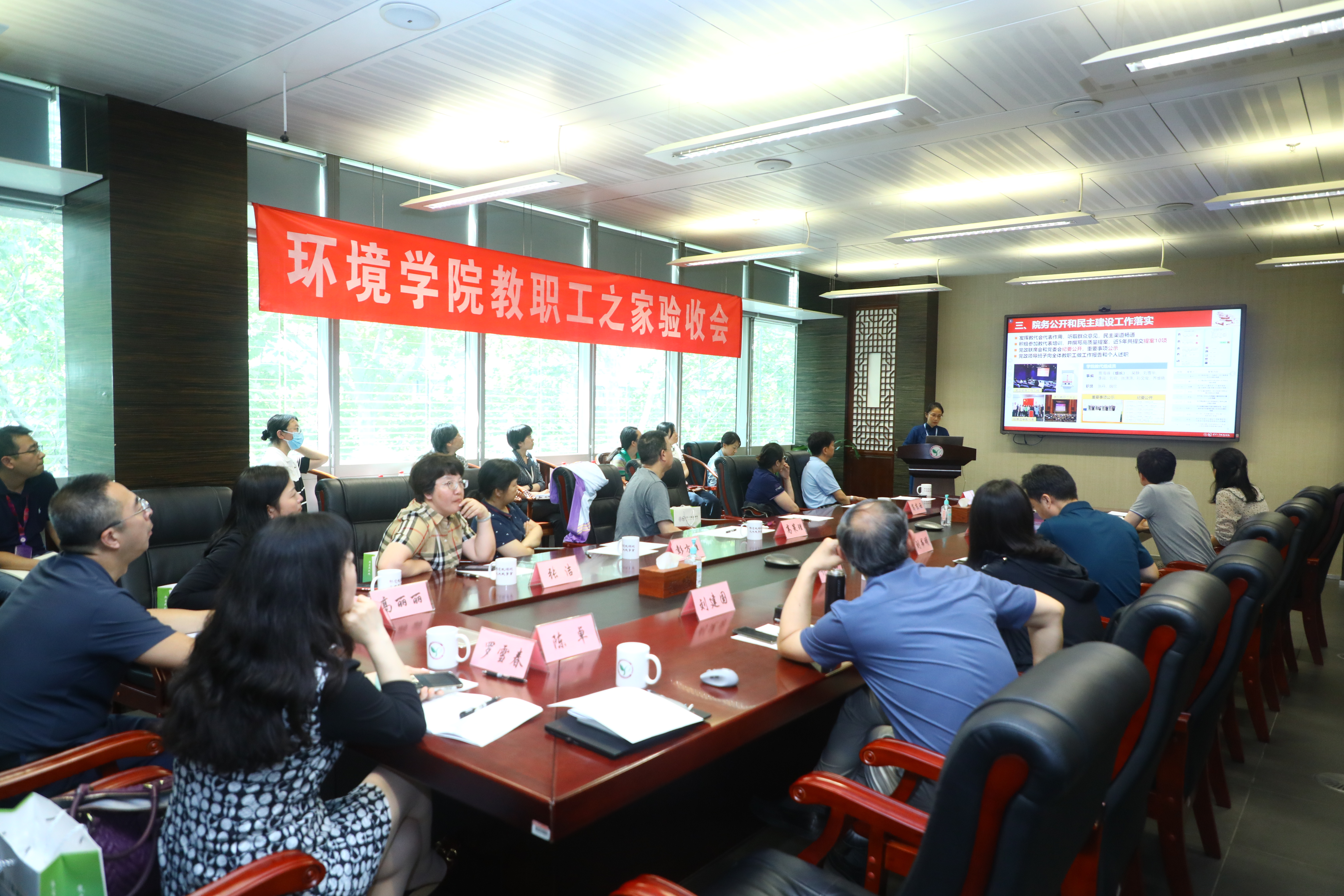 吴静从环境学院分工会基本情况、党政重视支持工会工作、院务公开和民主建设工作落实、注重教职工队伍建设、依法维护教职工合法权益、加强分工会自身建设和志愿服务上级活动等七个方面对环境学院教职工之家建设情况进行了汇报。她表示,学院分工会始终以凝心聚力服务学院发展,全心全意维护职工权益为宗旨,紧密围绕学院中心工作,全面履行工会职能,充分发挥了党联系群众的桥梁和纽带作用,近几年服务能力和组织活力不断增强。她还表示,在校工会和学院党委的领导下,学院分工会将继续全面履行工会职能,总结经验,改进不足,探索创新,推动学院各项工会工作有序进行。