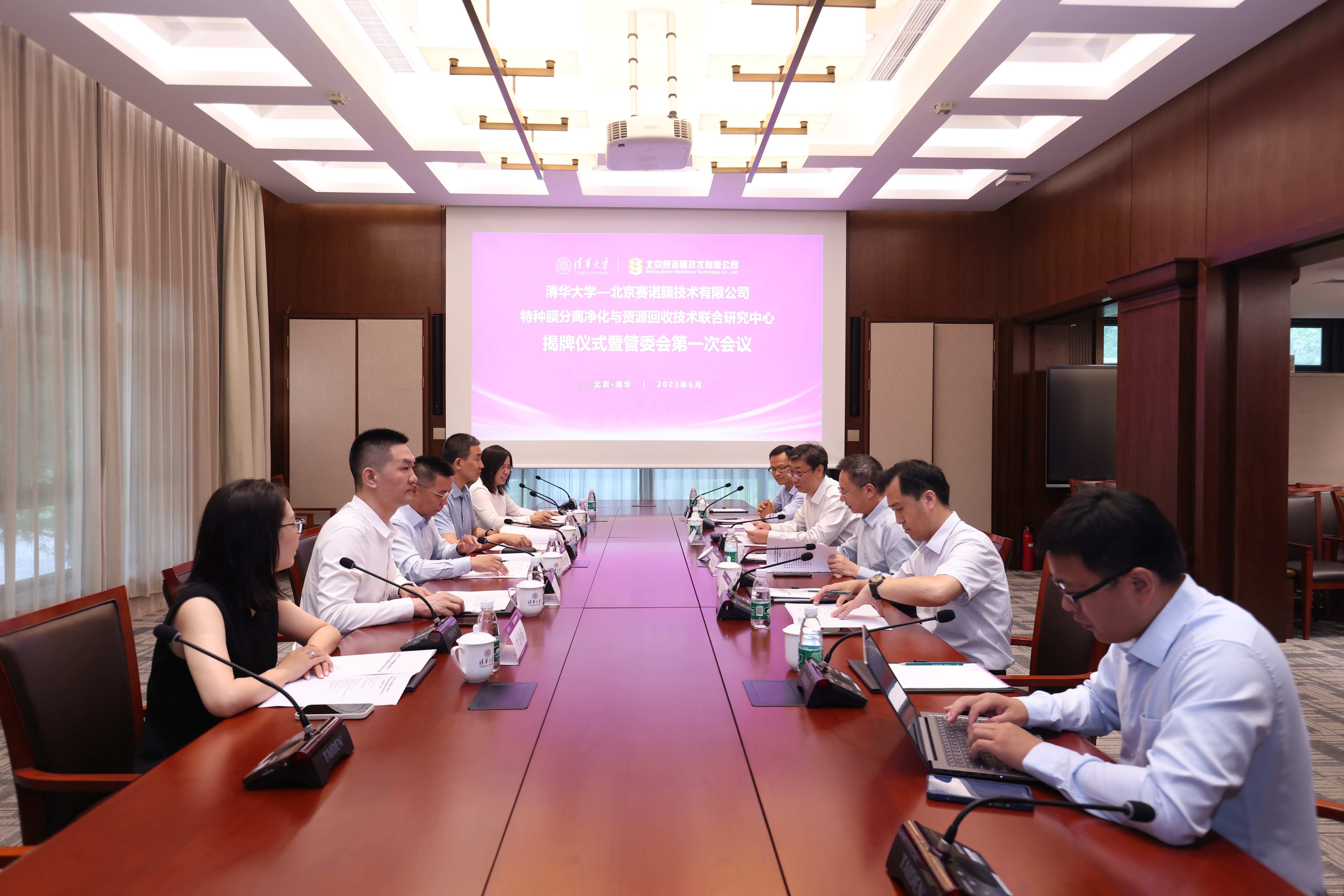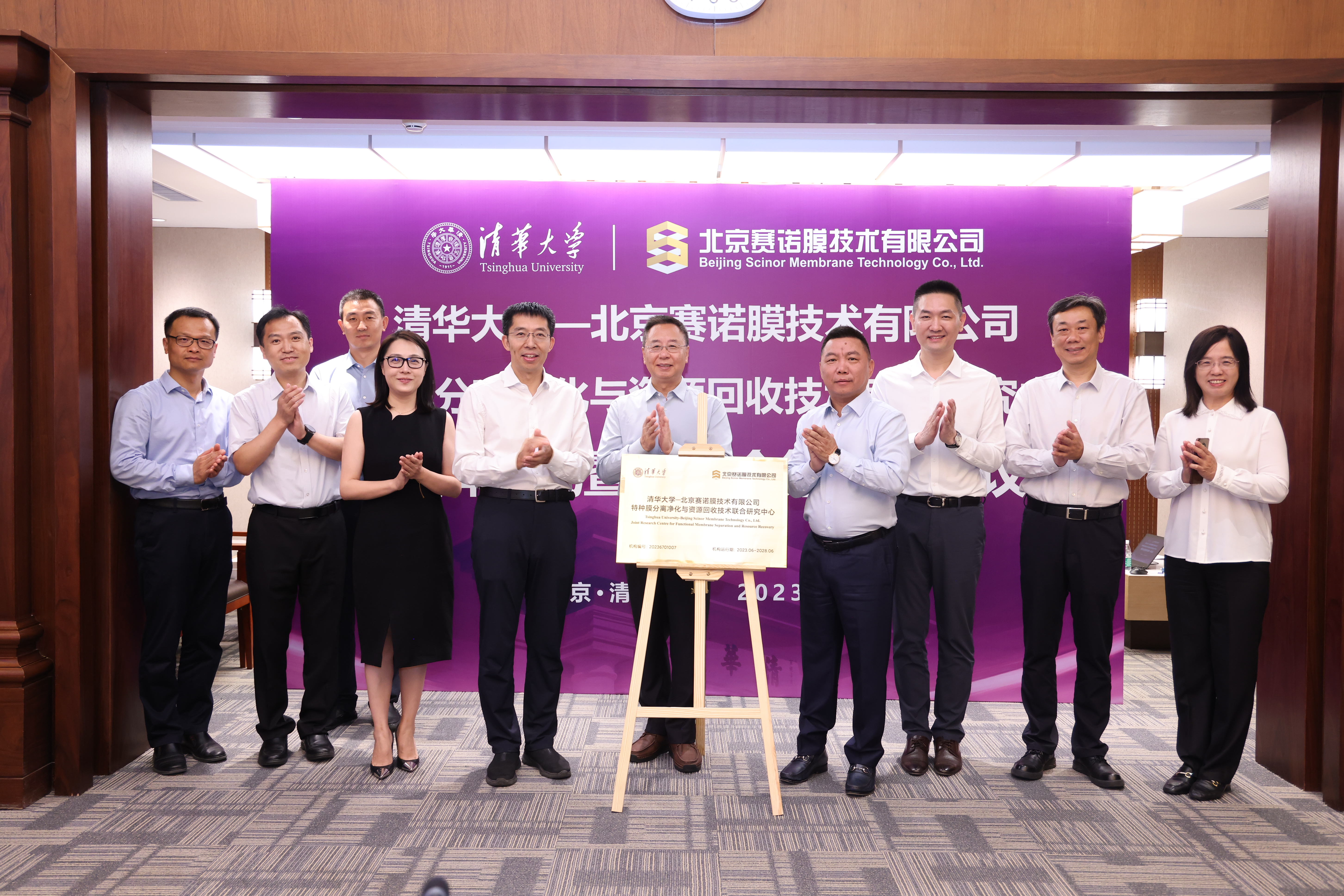 MK·体育(中国)官方网站2023年6月29日电(通讯员 王天玉)6月26日,清华大学-北京赛诺膜技术有限公司特种膜分离净化与资源回收技术联合研究中心(以下简称“清华-赛诺联合研究中心”)揭牌仪式暨管委会第一次会议在清华大学丙所会议室举行。清华大学副校长曾嵘,中国工程院院士、MK·体育(中国)官方网站特聘教授、清华-赛诺联合研究中心主任曲久辉,赛诺母公司天壕集团董事长陈作涛共同为清华-赛诺联合研究中心揭牌。
