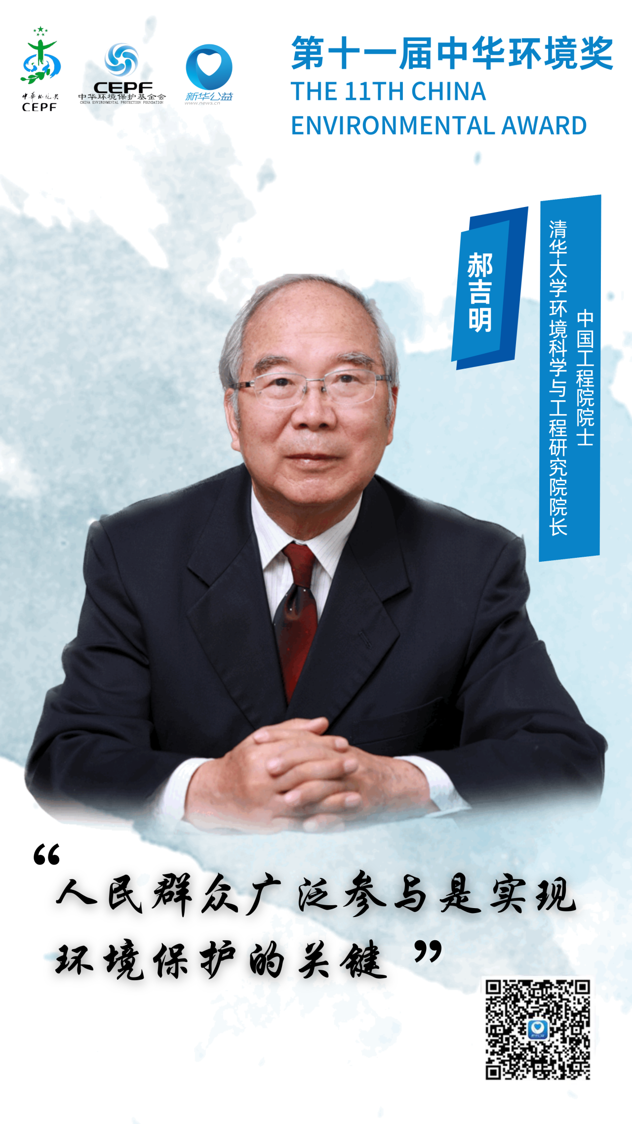 郝吉明:中华环境奖是中国生态环境保护领域最高的社会性奖项。将这项荣誉颁给我,亦是颁发给广大从事大气污染防治工作,战斗在各条战线的所有同行、同事们。由于中国环境空气质量的改善,我们也有了“获得感”,这个奖是对所有从事大气污染防治工作同行们的认可和奖励。