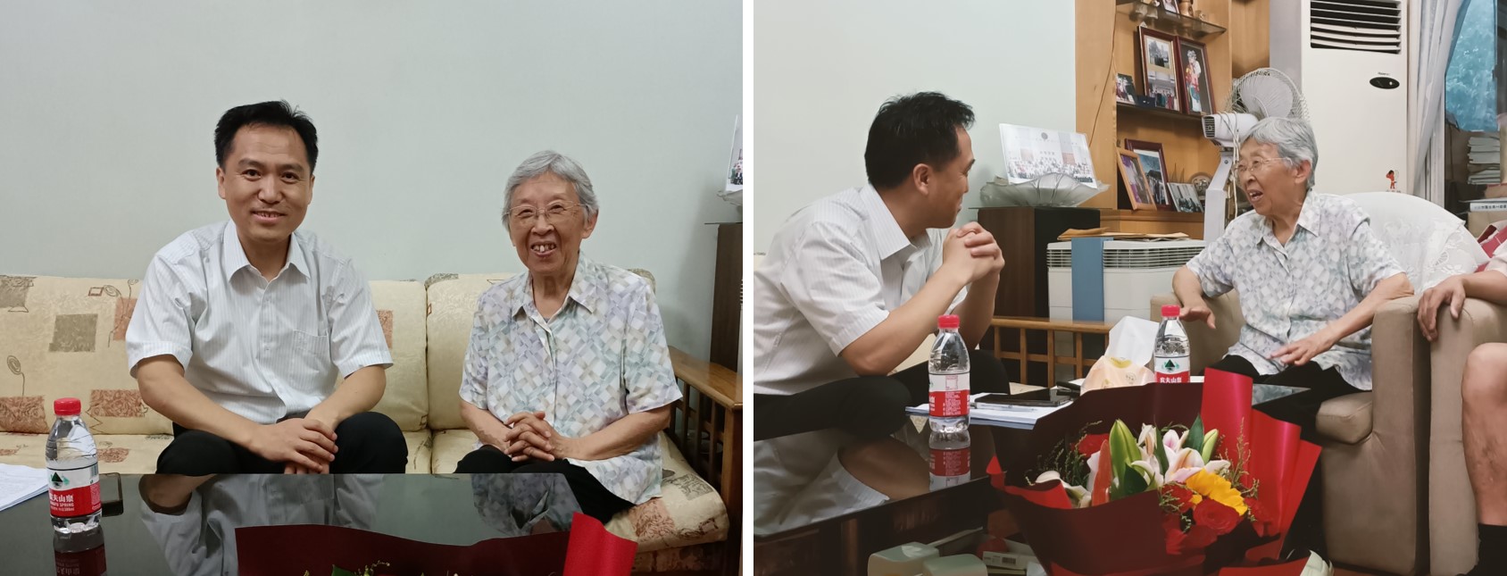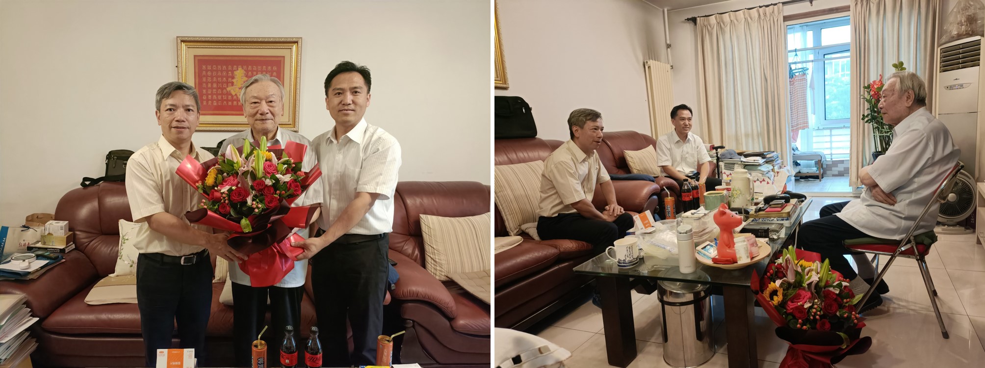 井文涌教授和钱易院士在环境学科发展、队伍建设、人才培养和社会服务等方面作出了突出贡献。走访中,刘书明、王灿详细询问了两位老师的身体与生活情况,并介绍了学院近期的发展情况和未来规划,感谢他们长期以来为学院发展作出的巨大贡献,感谢他们退休后仍胸怀大局,心系学院发展,建言献策,是学院全体师生学习的榜样。两位老先生精神矍铄,仍心系学院发展,详细了解学院发展情况,并提出了自己的建议。他们希望学院能够紧跟国家发展需求,为我国生态文明建设和世界可持续发展作出更大的贡献。刘书明、王灿代表学院师生祝愿老先生们健康长寿、生活幸福。