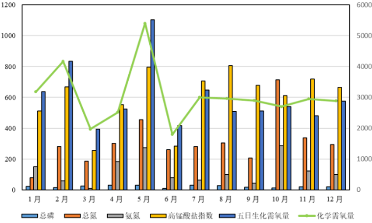 ▲钤阳湖每月入湖污染物通量图(数据来源:分宜县生态环境局)