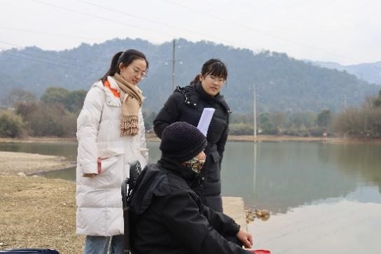 在实地调研阶段,支队成员前往钤阳湖进行了现场观察和访谈调研:通过实地考察,详细记录了湖水的物理特征及周边植被覆盖、土地利用情况;与当地环保部门和周边居民进行了深入交流,了解了他们对钤阳湖生态环境变化的看法及对生态保护政策的认知。