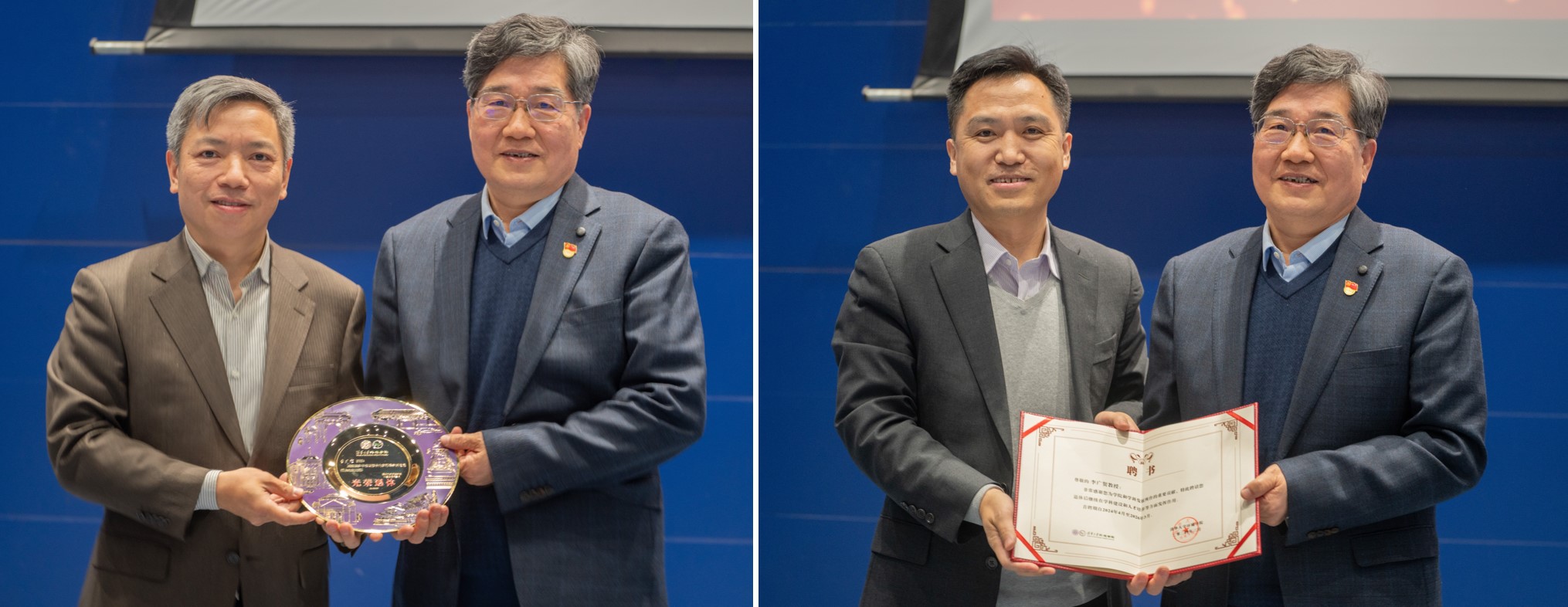 最后,王灿为李广贺老师送上定制的学院第81位退休教师纪念盘,刘书明向他颁发了返聘证书,感谢李老师为学院和学科发展所作的重要贡献,并聘请其继续在学科建设和人才培养等方面发挥作用。
