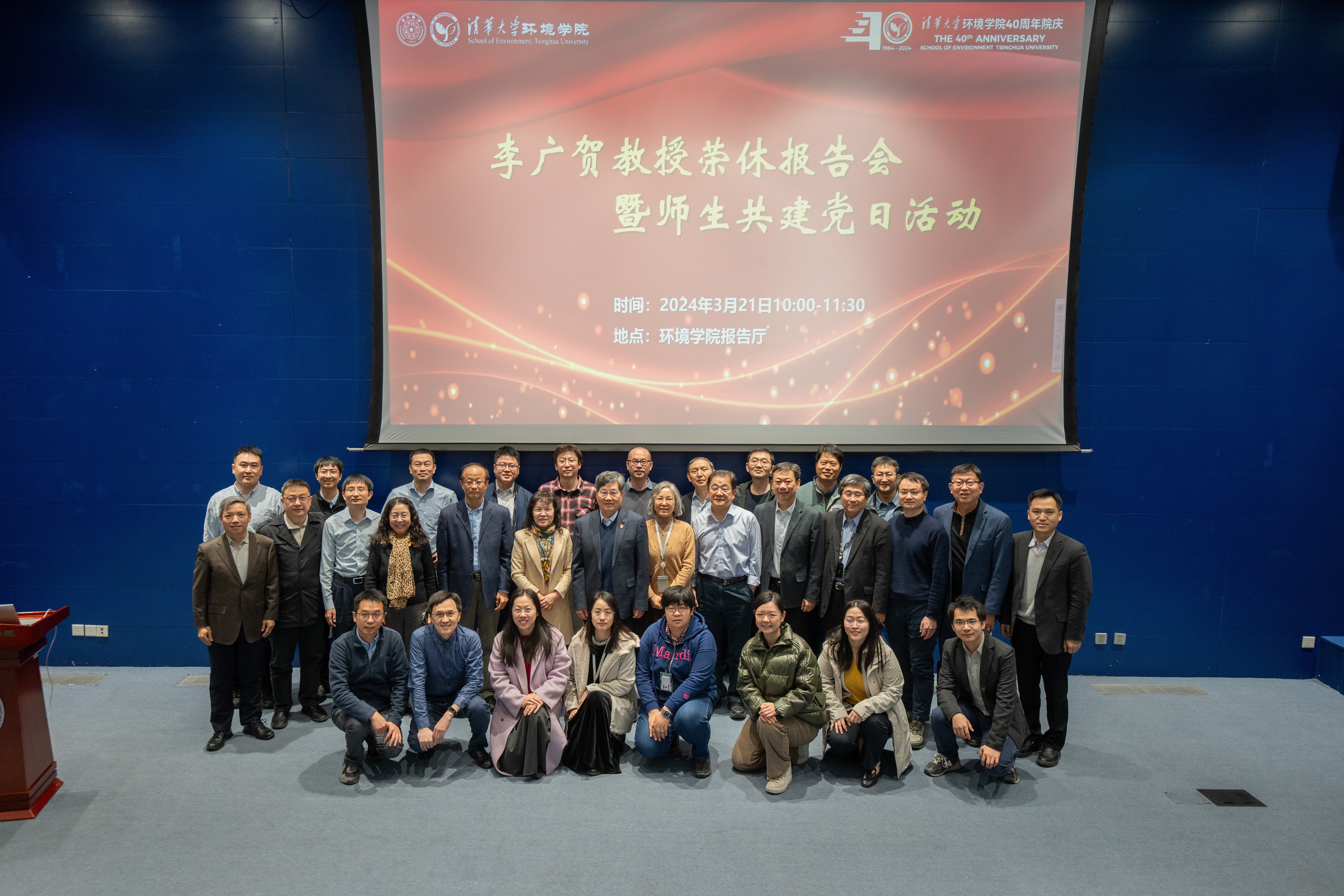 为当年退休的教授举办荣退座谈会、报告会是环境学院建立的重要学术制度和文化建设活动。本次荣退会结合师生共建党日活动举行,不仅对退休教师为学院发展作出的重要贡献表示了感谢,传承了尊师重教的优良传统,也弘扬了老一辈清华环境人的精神,激励师生为美丽中国建设接续奋斗。