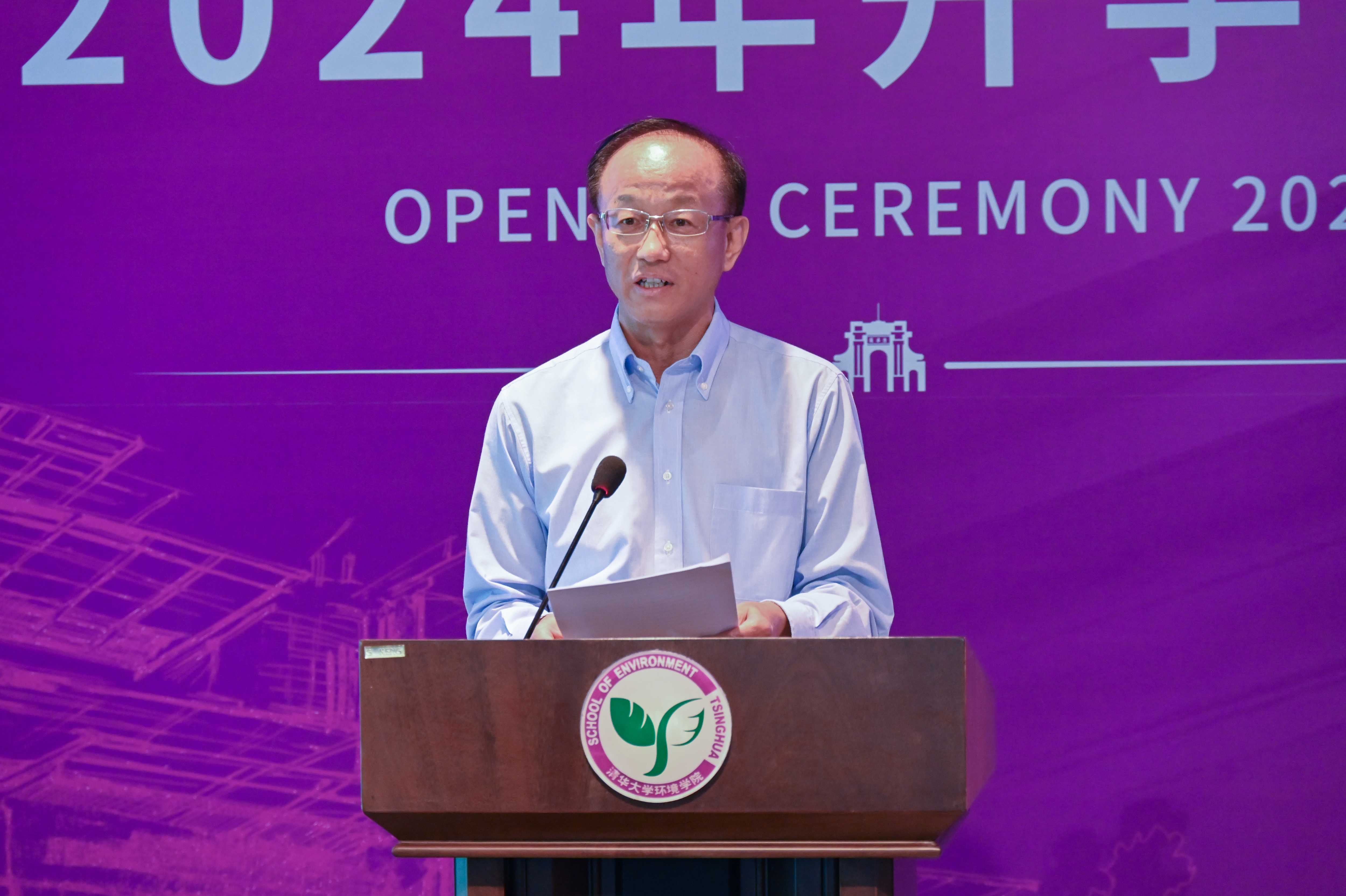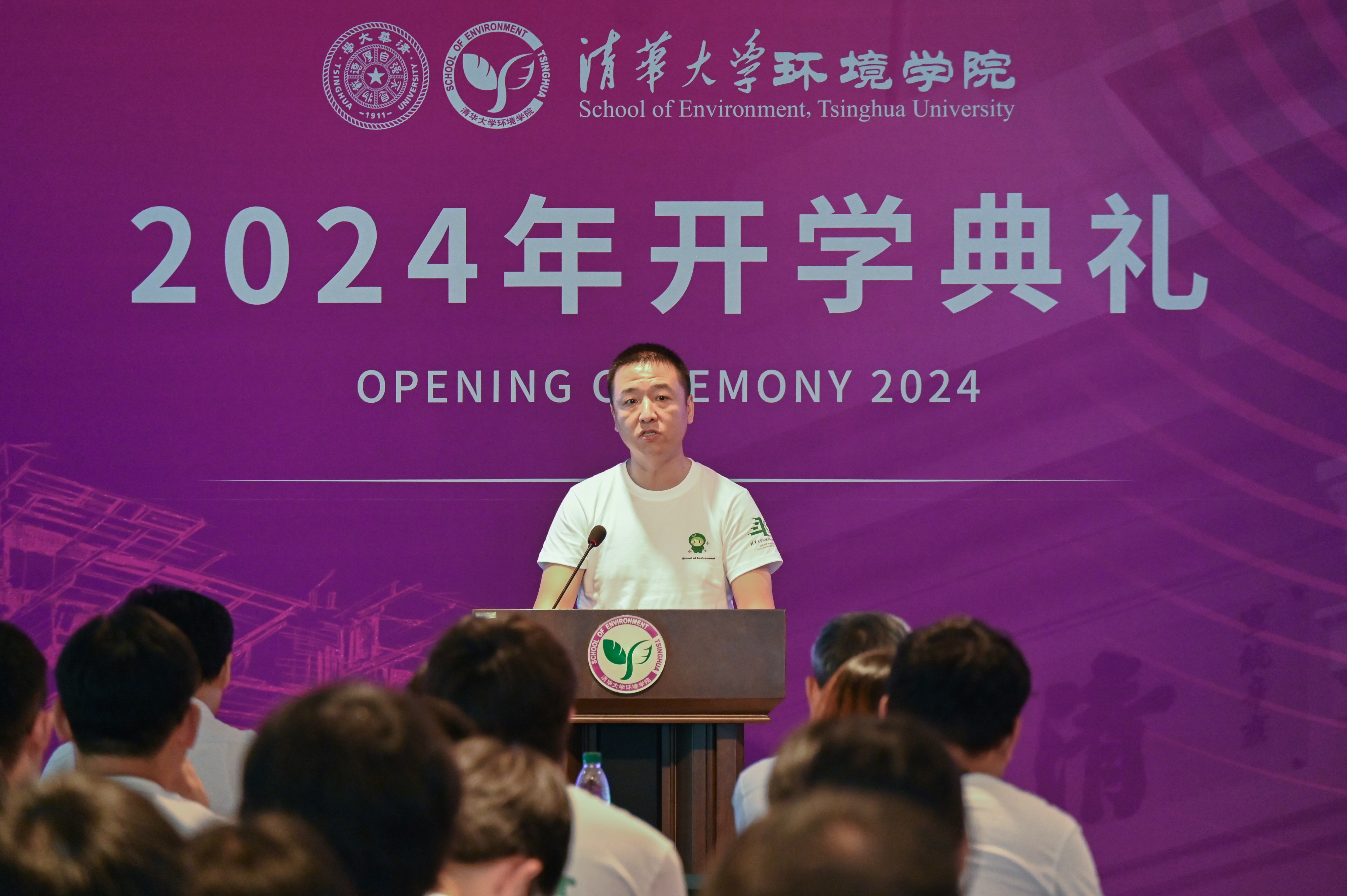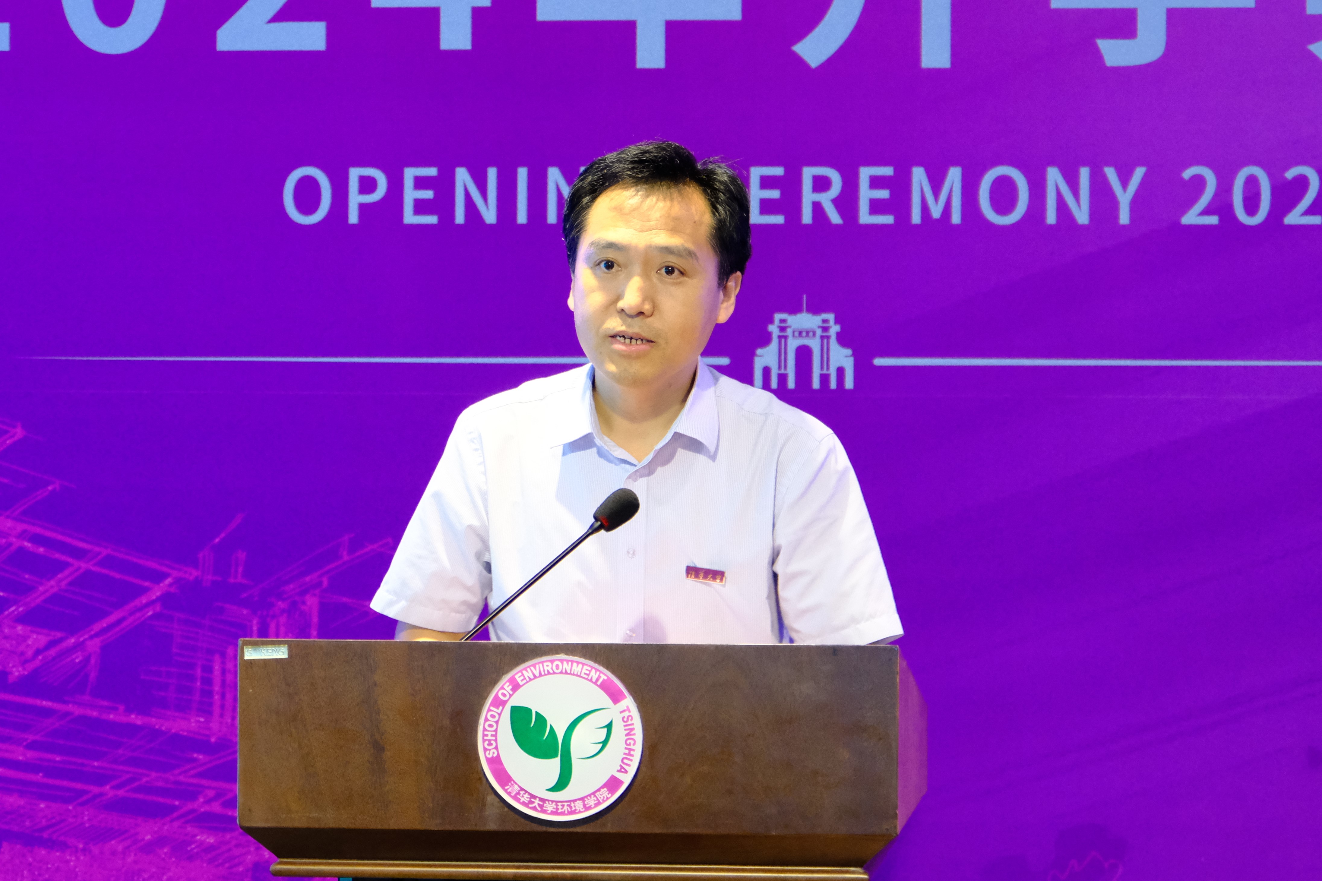 胡洪营作为教师代表致辞。他对同学们开启人生新篇章表示祝贺,并以切身经历,向新生们分享了对环境领域学科发展的思考。他强调,环境人要有“环境”思维:要对“环境本身”特征有客观、深入的认识,在研究中充分考虑环境本身的复杂体系特征;要对“环境事业”有全面、系统的认识,重视发现问题、推动政策、研制标准的研究;要对“环境学科”属性有正确、辩证的认识,培养实践观念和工程思维,不断从实践中寻求具有“环境价值”的研究。最后,他寄语同学们享受研究生时光,为环境学科注入新的活力,为实现人与自然和谐共生的现代化贡献青春力量。