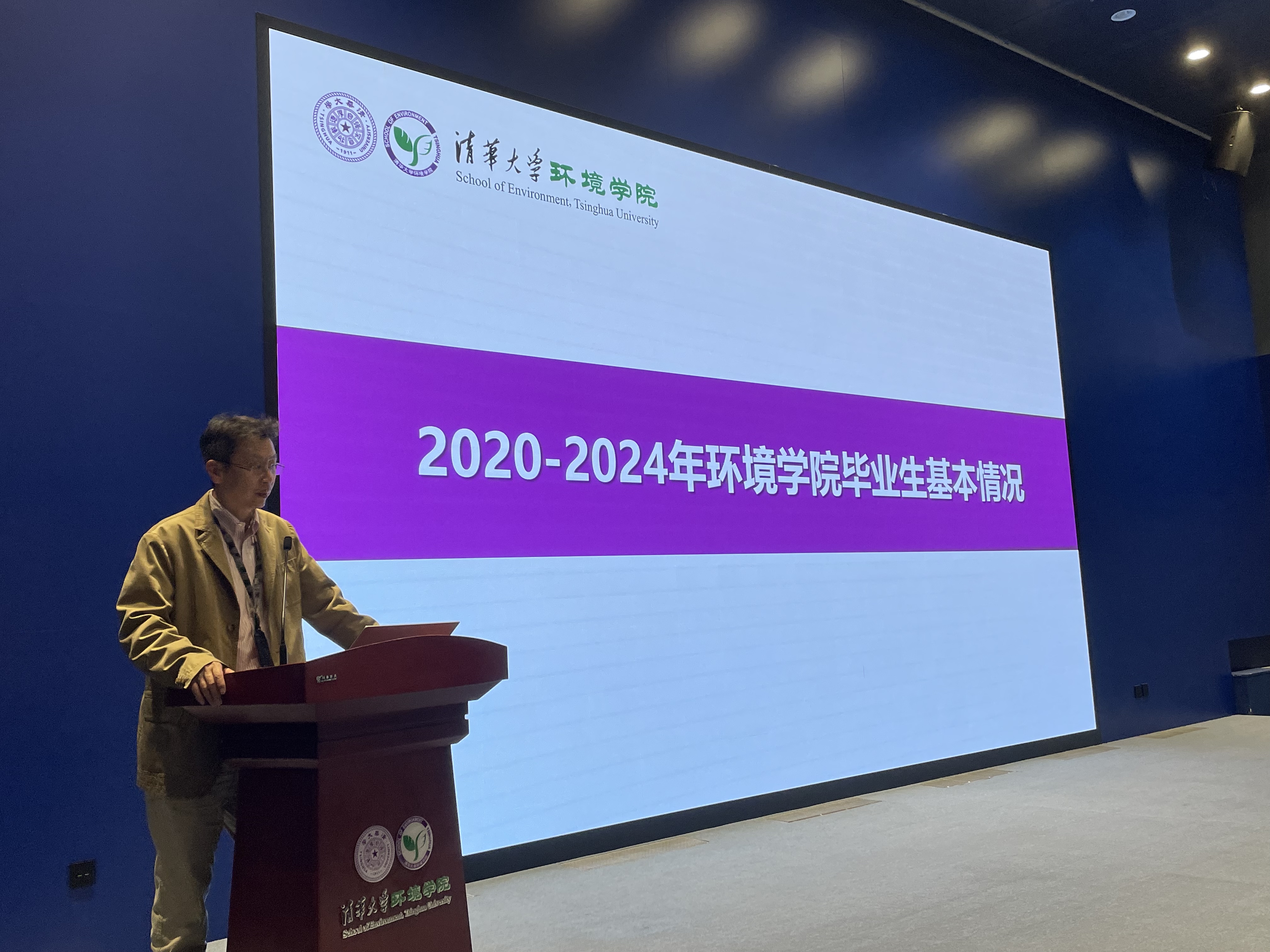席劲瑛介绍了近五年环境学院毕业生的总体情况,对毕业去向、地域分布、单位性质、就业特点等进行了分析,梳理了学院近年来开展的具有专业特色的职业发展引导工作,特别介绍了学院于2023年设立的“启航奖学金”,该奖项表彰做出具有方向性意义就业选择的优秀毕业生,两年来共20位同学获奖。他分析了优秀校友的共性特点,鼓励同学们将个人的发展与国家的需要紧密结合,选择适合自己的职业方向。他建议同学们在求职过程中,要学会做选择,在充分了解社会和行业发展的基础上客观评价自己,避免随波逐流和患得患失;要珍惜在校时间,积累成果,练好内功;要利用好校内外的丰富资源,获取更多就业机会。