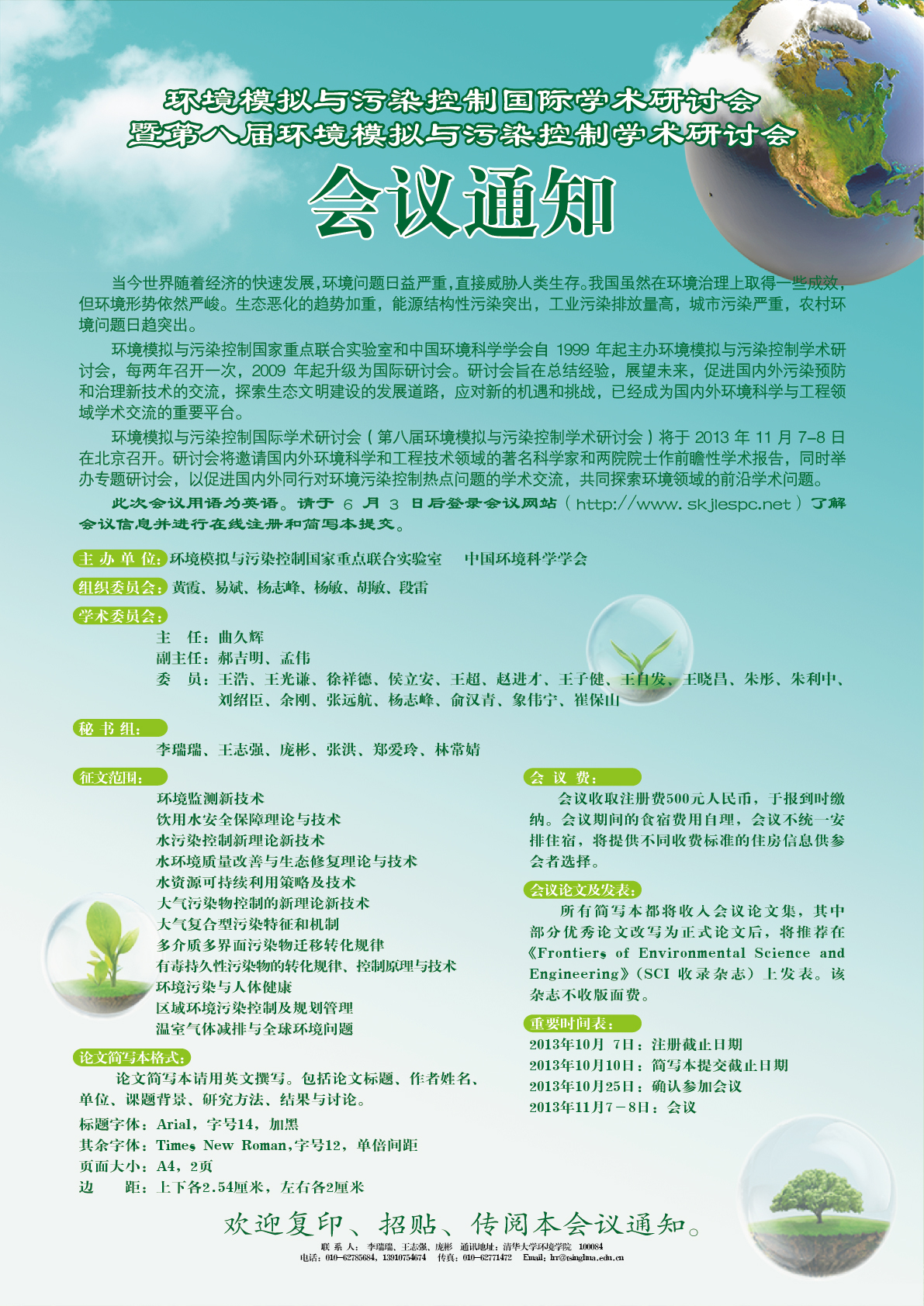 环境模拟与污染控制国际学术研讨会暨第八届环境模拟与污染控制学术研讨会会议通知