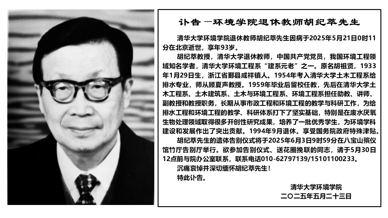 讣告 | 环境学院退休教师胡纪萃先生