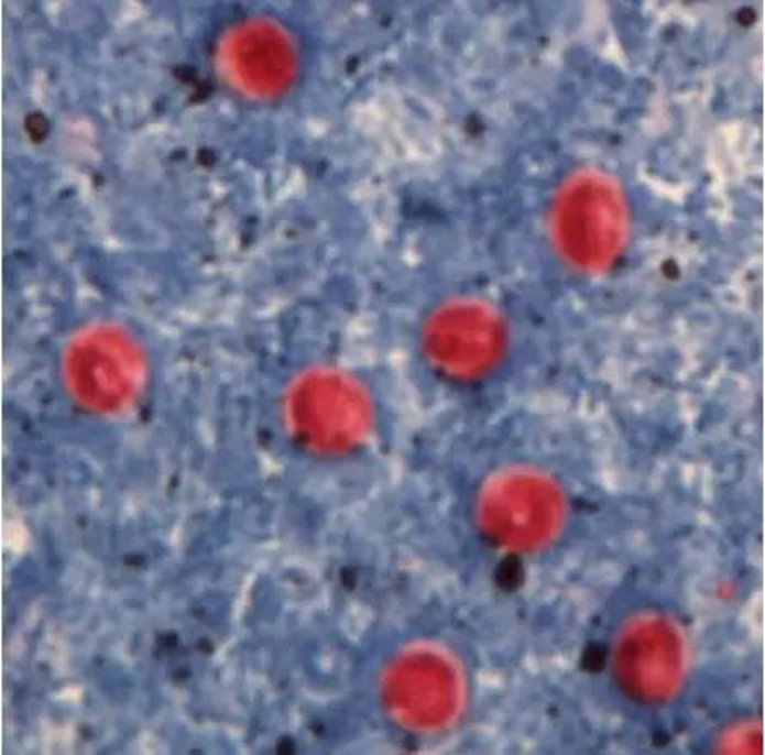 图 改良尼氏抗酸染色发现隐孢子虫卵囊(图源:CDC/俄勒冈州公共卫生实验室)